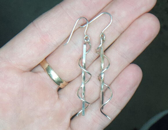 Sterling silver twisted square wire toothpick. Inconveniently, and somewhat amusingly, very much not recommended by oral heath professionals for use on teeth, which I found out after making it.