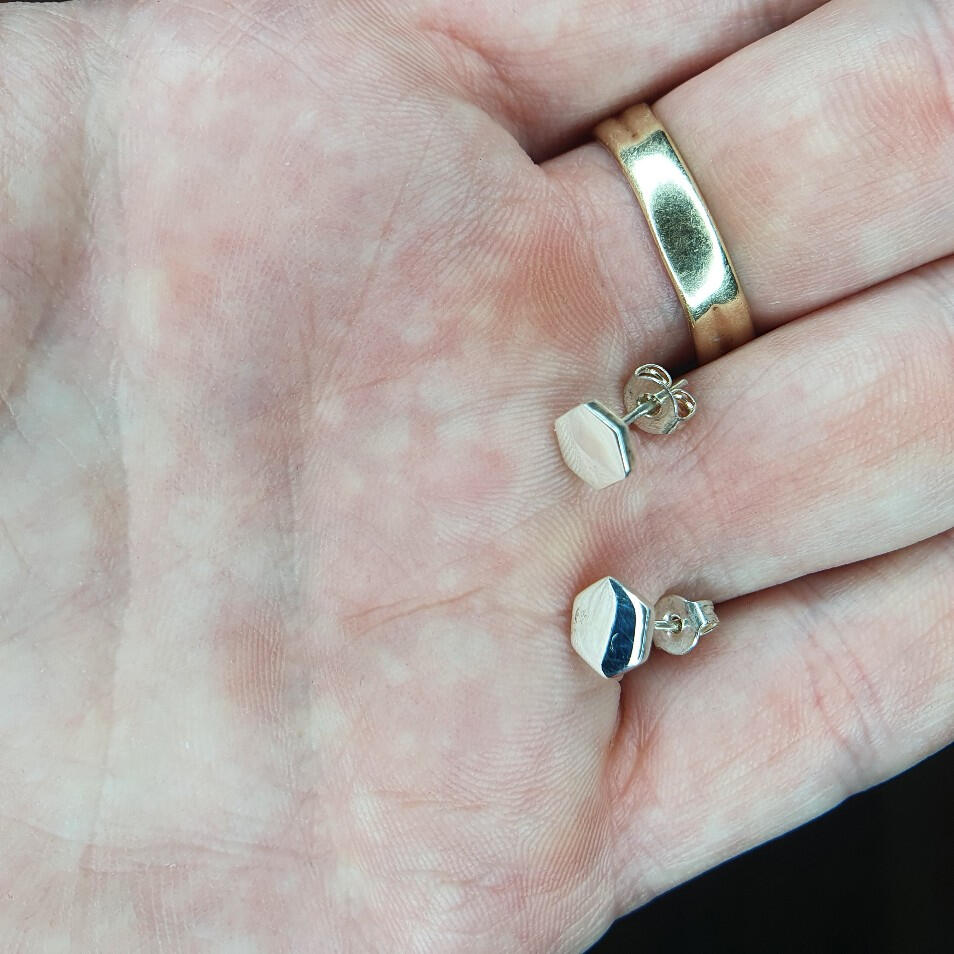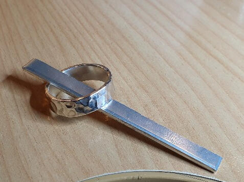 The very first piece of jewellery I made for someone else.Made using the off cuts from the sheet metal used to make my ring during the Level 1 Silver Smithing course at The Silversmiths' Guild of Canterbury