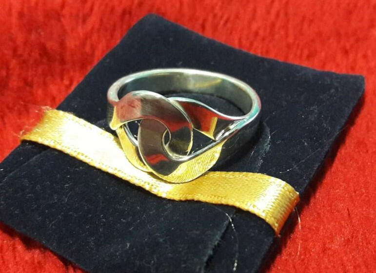 Sterling silver Claddagh promise ring commissioned by a good friend of mine for her partner as a surprise when she traveled overseas to see him.This piece fuses his heritage and a part of New Zealand by including a stone at the center of the heart that is only found in NZ.Her countries heritage and his brought together in a single piece