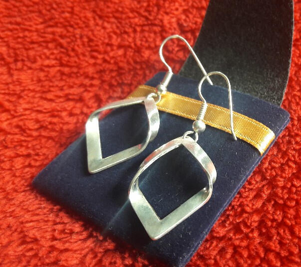All sterling silver earrings that taper at the top and bottom 90 degrees from each other.