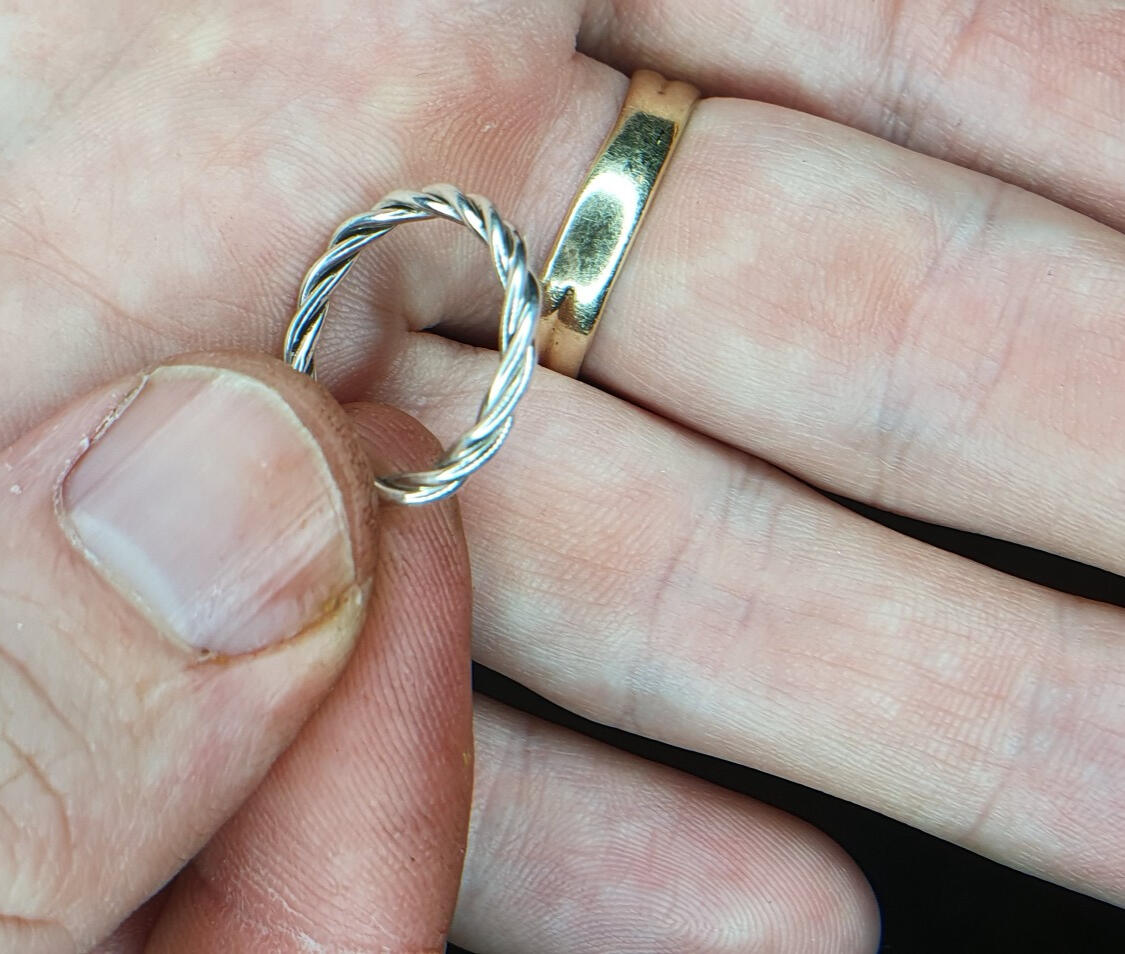 Variant on my other sterling silver rope ring. Made to fit as a thumb ring rather than a finger ring